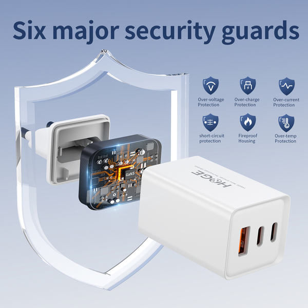 Professioneller Ladeschutz: Das Ladegerät nicht nur integriert einen intelligenten Schutzchip, songdern auch verfügt über die führende GaN-Technologie, um Ihnen ein schnelleres, stärkeres, sicheres Ladeerlebnis zu bieten. Durch den integrierten Schutzchip schützen Ihren Geräten vor Kurzschluss, Überspannung, Überhitzung, Überstrom und Überladung. Ob nachts im Schlaf oder während eines stressigen Arbeitstages, unsere Schutztechnologie immer sorgen dafür, dass Ihre Geräte sicher und schnell geladen werden.