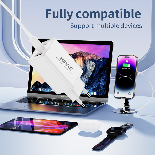 Ein für alle: Das Ladegerät ist als Allrounder. Er nicht nur unterstützt eine breite Palette von Ladeprotokollen, sondern auch ist mit fast allen Geräten kompatibel, einschließlich aber nicht beschränkt auf Mobiltelefone, Tablets, Powerbank, sogar Laptops. Wie zum Beispiel MacBook Serien, Dell XPS Laptops, ThinkPad, HP Laptops, iPhone 17-8 Serien, Samsung Galaxy Serien, Google Pixel Serien, Xiaomi, iPad Serien, AirPods, Apple Watch Serien, Switch, Steam Deck etc.